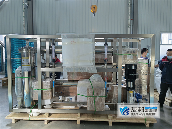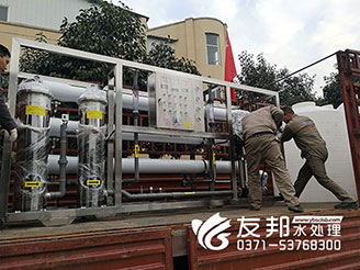 鄭州友邦水處理設備發貨日常:安徽正杰新材料10噸單反滲透設備發貨